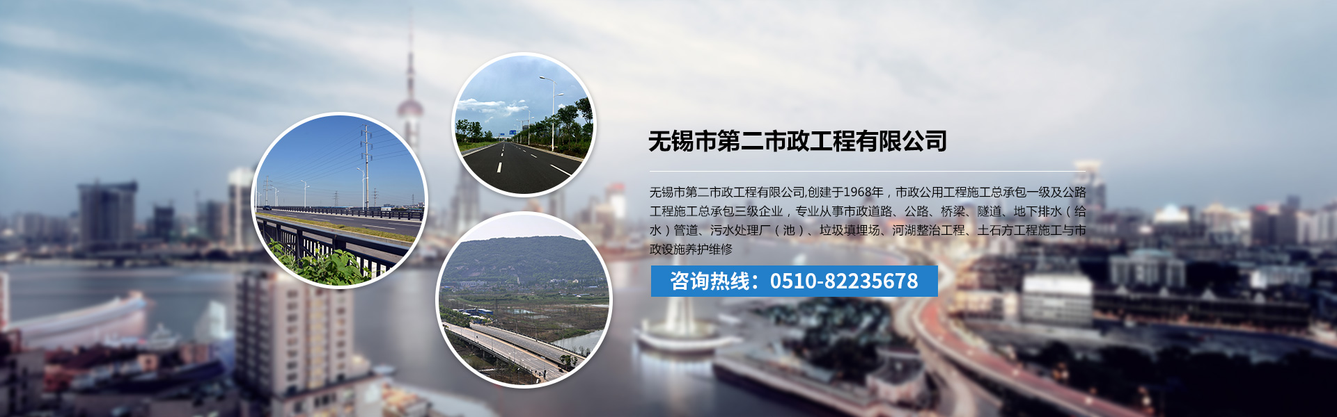 無錫市第二市政工程有限公司創(chuàng)建于1968年,擁有市政公用工程施工總承包一級資質(zhì)、建筑工程施工總承包二級資質(zhì)及公路工程施工總承包三級資質(zhì)。專業(yè)從事市政道路、公路、橋梁、房屋建筑、隧道、地下排水(給水)管道、污水處理廠(池)、垃圾填埋場、河湖整治工程、土石方工程施工與市政設(shè)施養(yǎng)護維修工作。